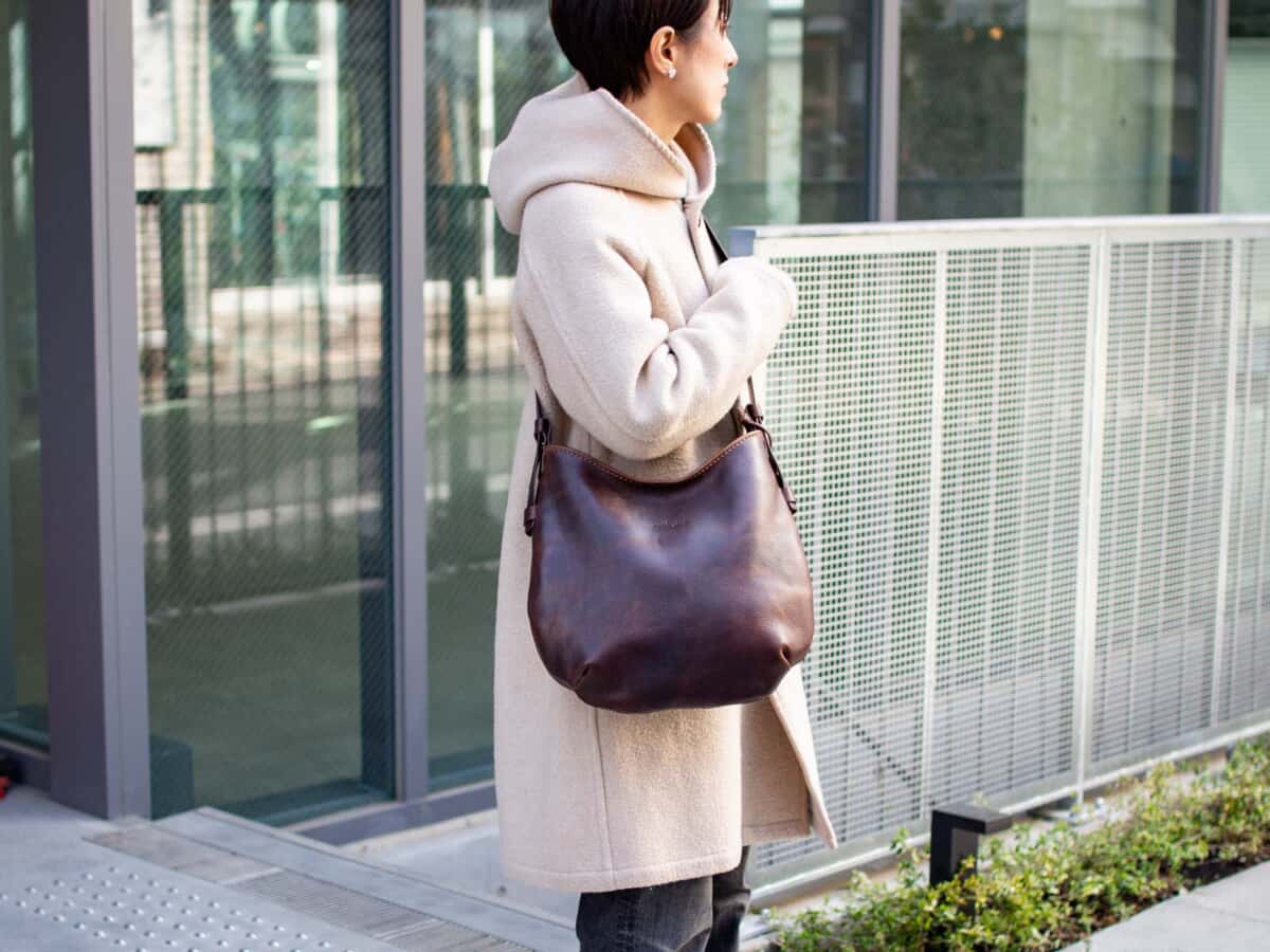 深みのある焦茶色ですが、使い込むと初めよりも明るく経年変化する不思議なカラーです。