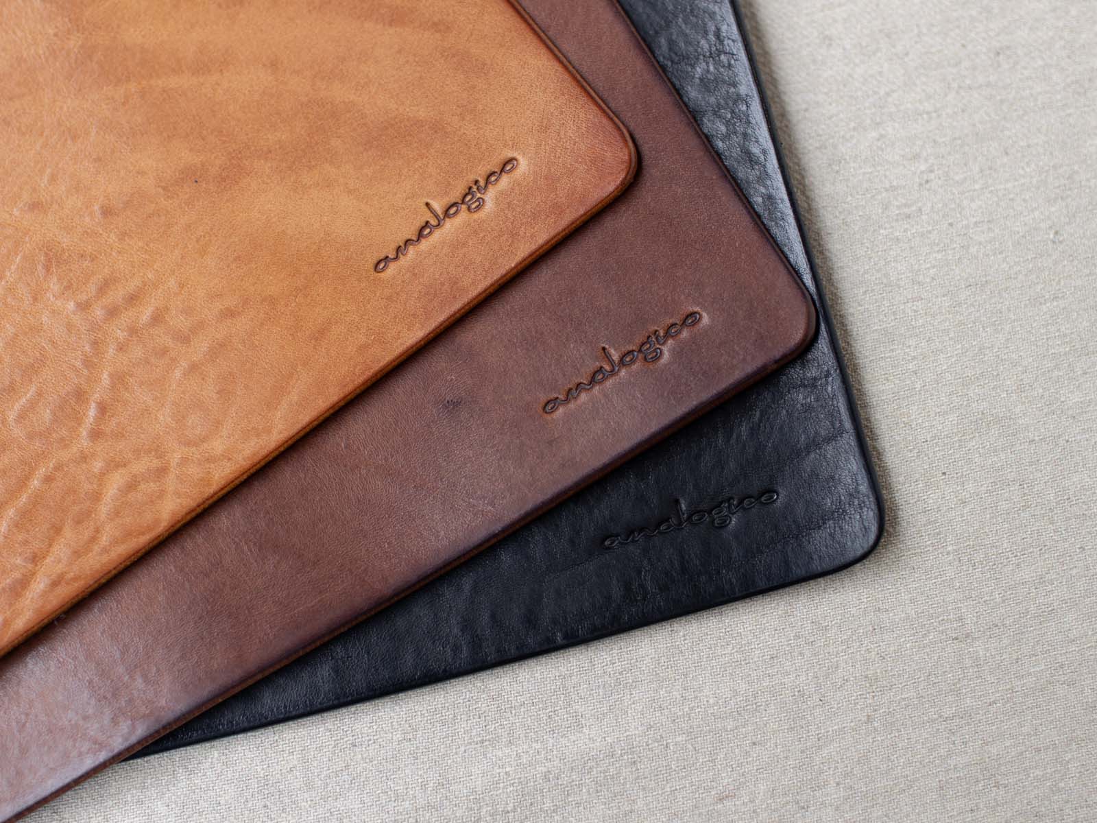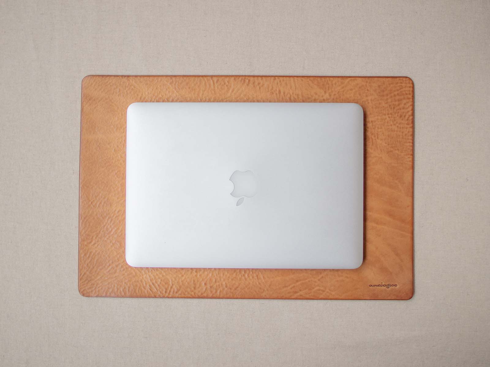 約3.5mm厚の極厚イタリアンレザー、ミッスーリを贅沢に使用しており、パソコンを置いた時に安定感があります。