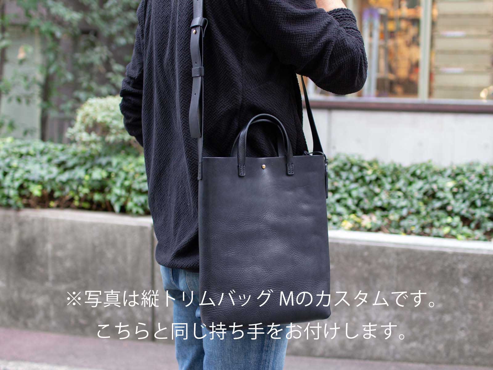 フタはありませんが、斜めがけに背負うと鞄が体にフィットして自然に収納口が閉じる縦トリムバッグ。