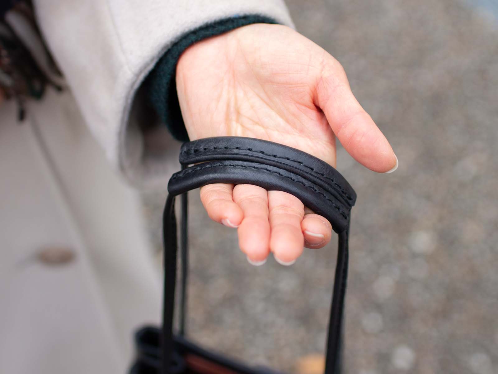 ショルダーを引き抜くだけでトートとショルダー、二つの持ち方を瞬時に切り替えられるのが特徴です。