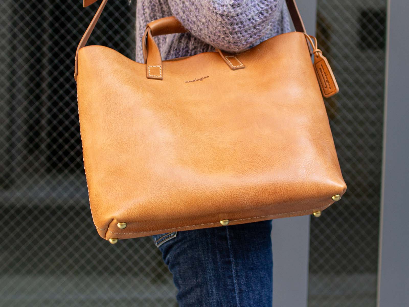 手持ちしてもバランスよく、荷物が重い時は肩掛けもできて便利。実用的でビジネストートとしてもおすすめです。