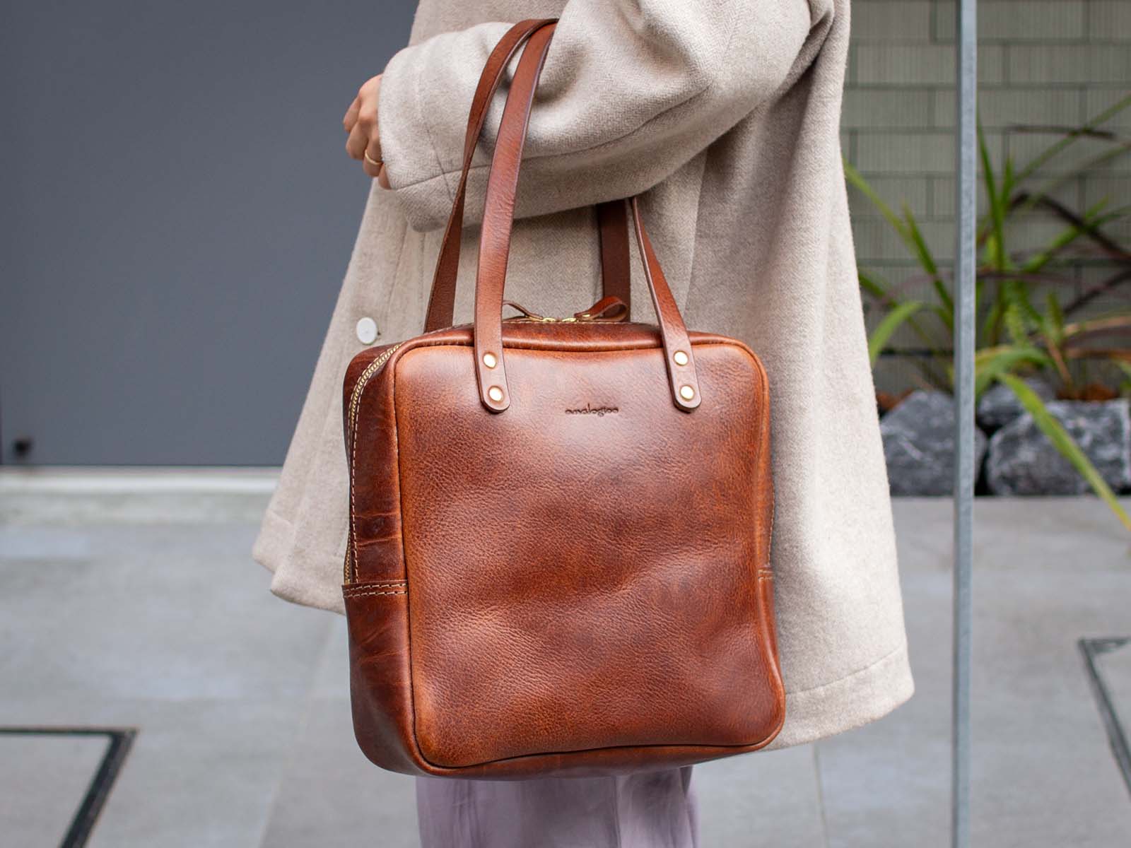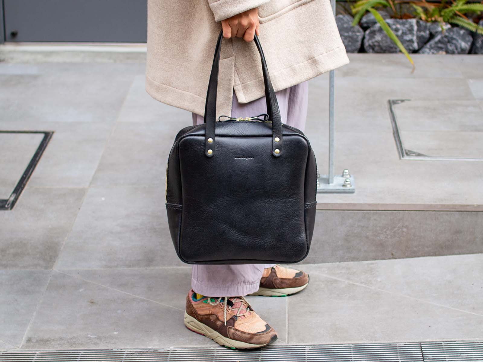 9cmマチがあり、厚切り食パンのようなふっくらしたフォルムが可愛らしいトートバッグです。